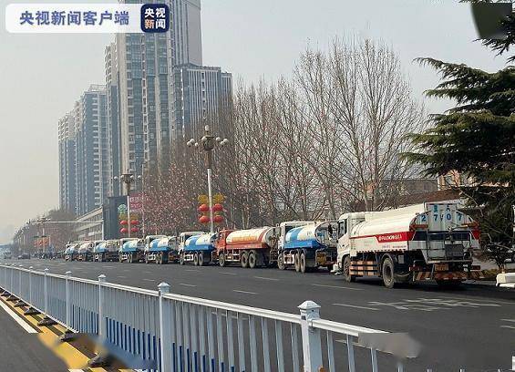 北京时间:2021年3月9日13时28分,总台央视记者在火灾现场观察到:明火基本被扑灭,为防止复燃,消防车仍在进行扫射灭火作业。在距离起火点不远处,二十多辆写着“桥西环卫”的作业车待命,为消防车源源不断供水。