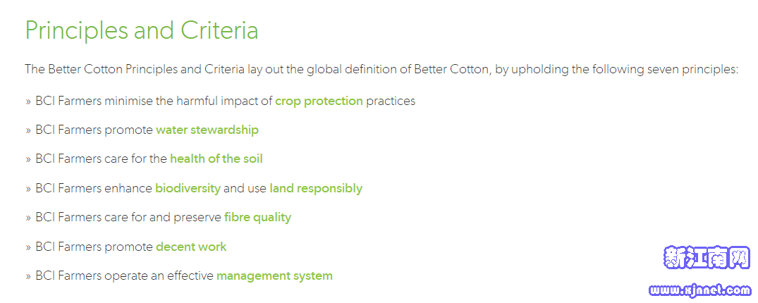 BCI称,出于对良好棉花生产的要求,该组织提出“七大生产原则”:
