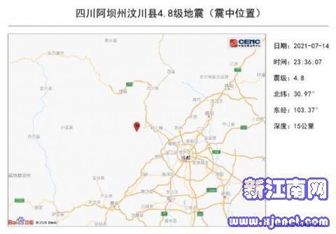据@中国地震台网 消息,中国地震台网正式测定:07月14日23时36分在四川阿坝州汶川县(北纬30.97度,东经103.37度)发生4.8级地震,震源深度15千米。