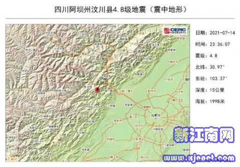 2021年7月14日汶川4.8级地震位于汶川余震区南段,属于汶川余震区的一次起伏活动。