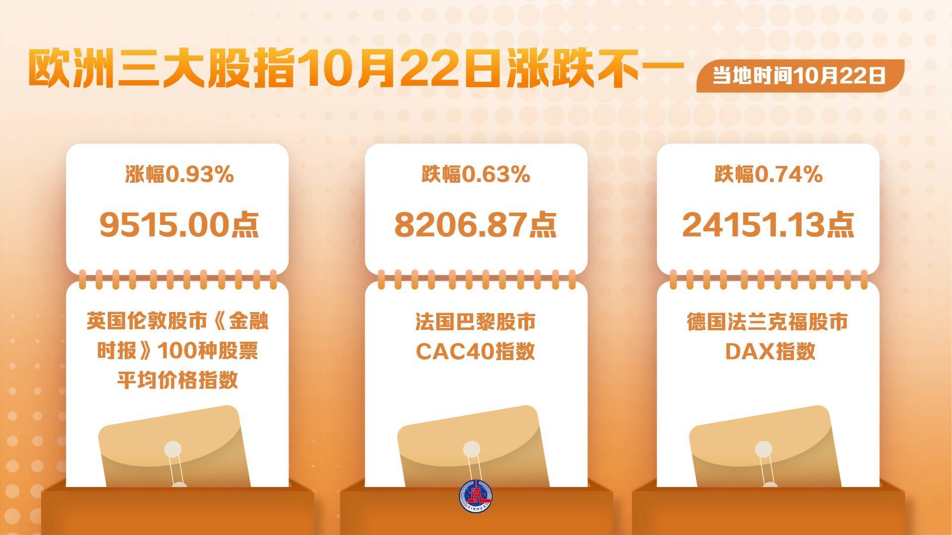 欧洲三大股指10月22日涨跌不一