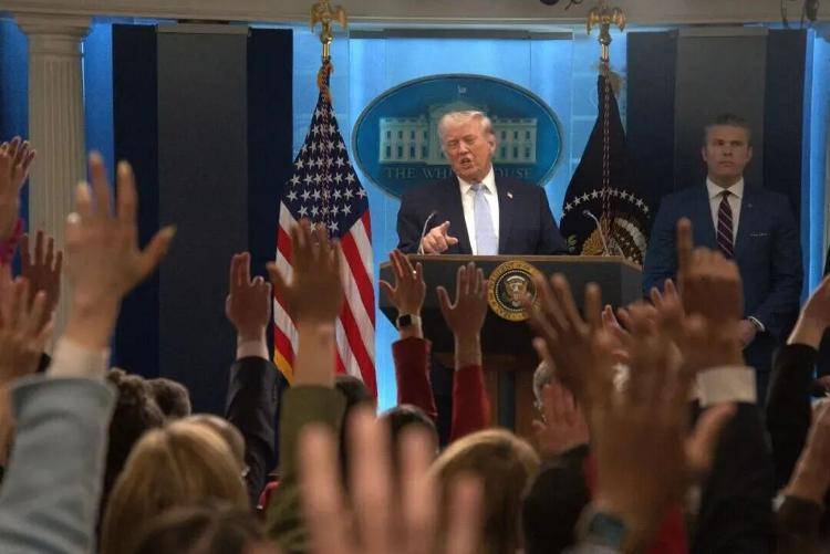4月6日,美国总统特朗普在首都华盛顿白宫举行的新闻发布会上讲话。新华社发(李源清摄)