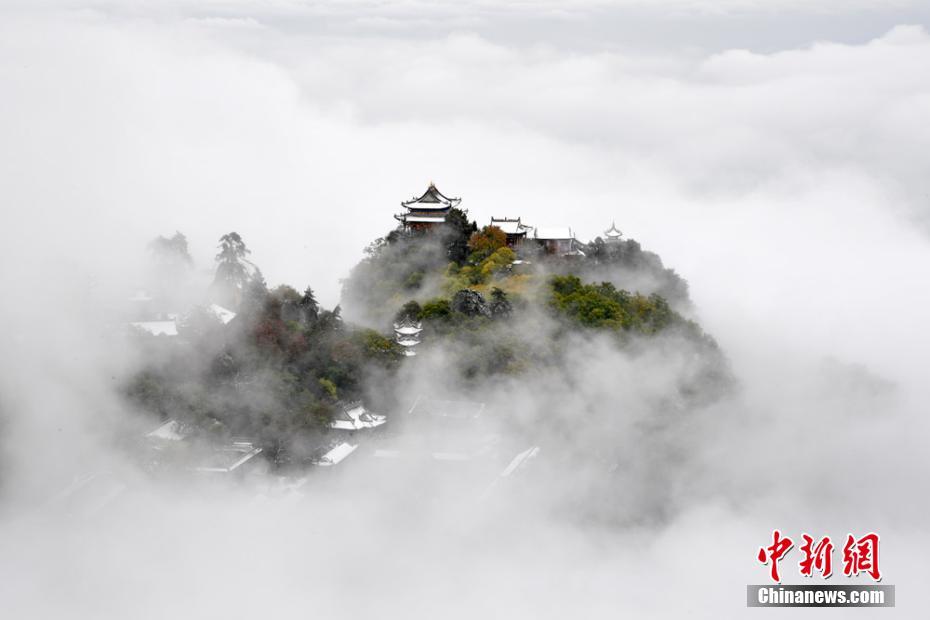 受冷空气影响,10月9日晚至10日凌晨,甘肃崆峒山迎来秋日降雪。白雪古刹、苍松翠柏相互辉映,云海翻滚波涛汹涌,吸引游人、摄影爱好者踏雪游山,尽赏秋天里的冬日美景。