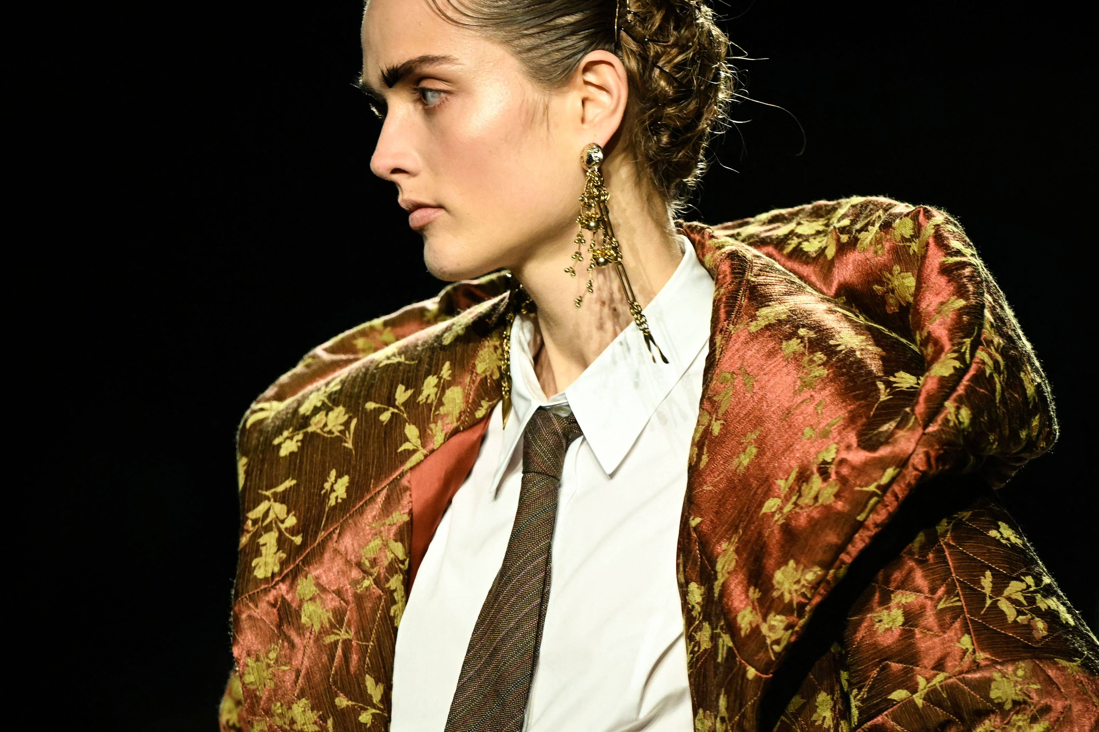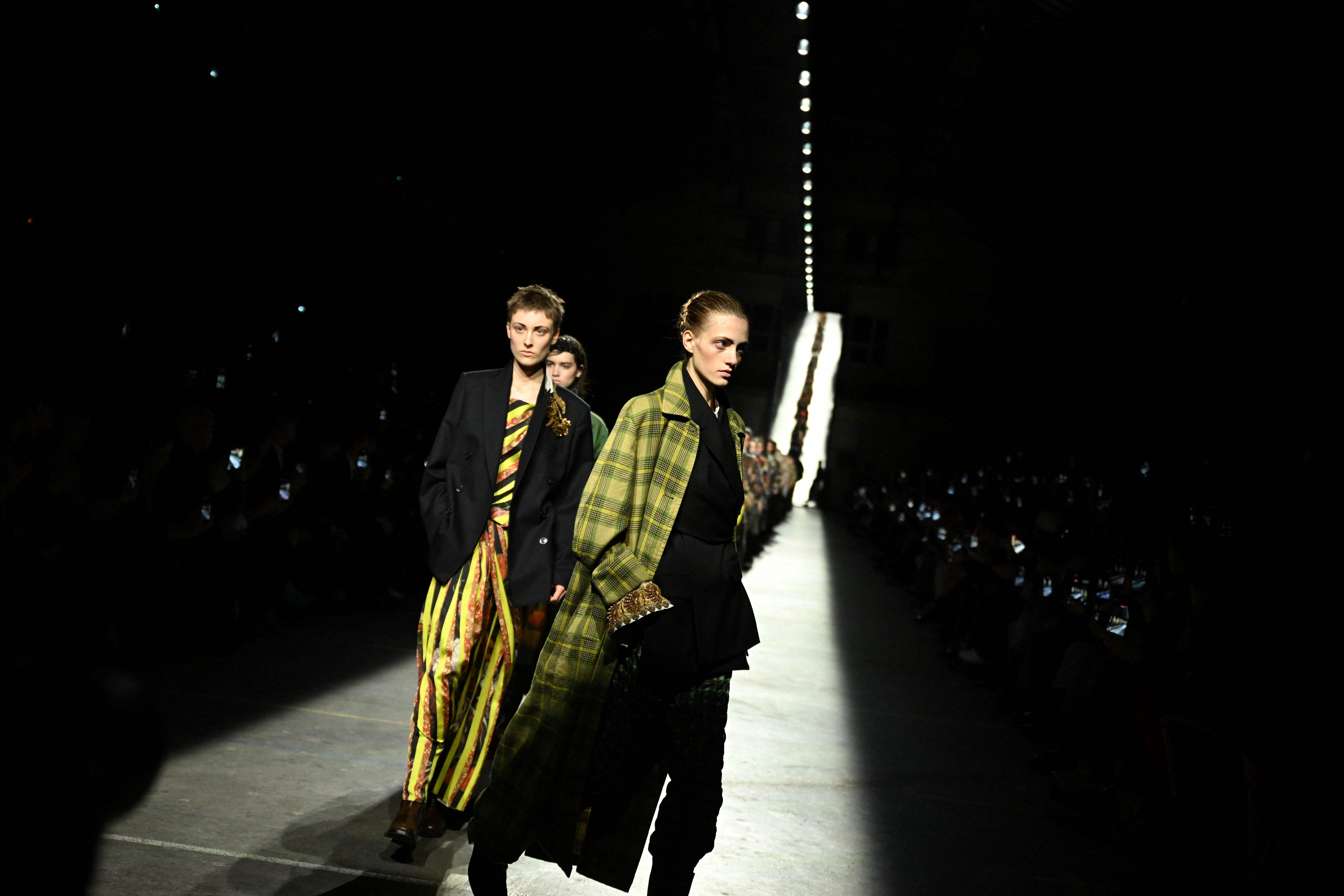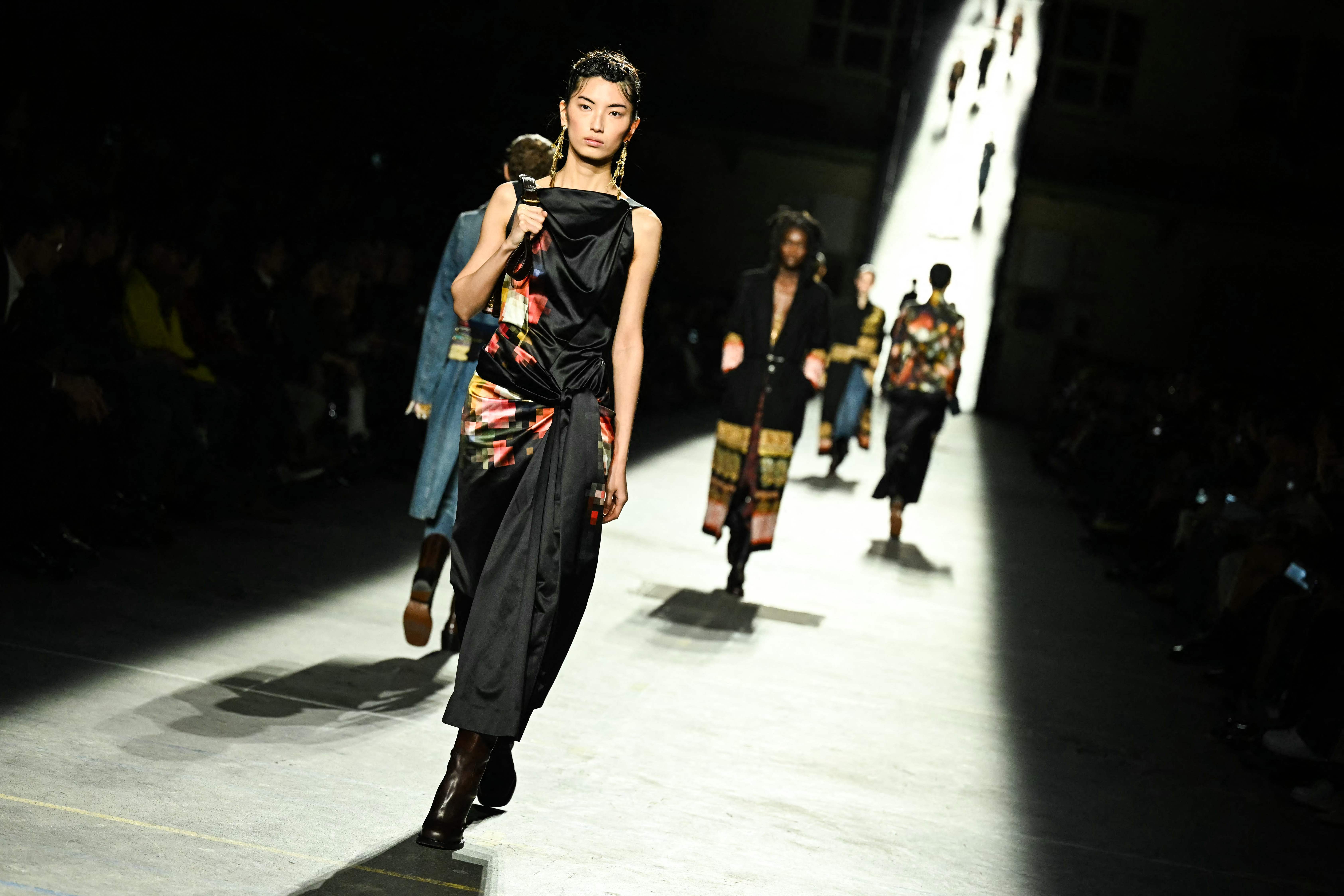 3月4日,模特在法国巴黎时装周上展示Dries Van Noten品牌的2026-2027秋冬新款时装。 新华社/法新