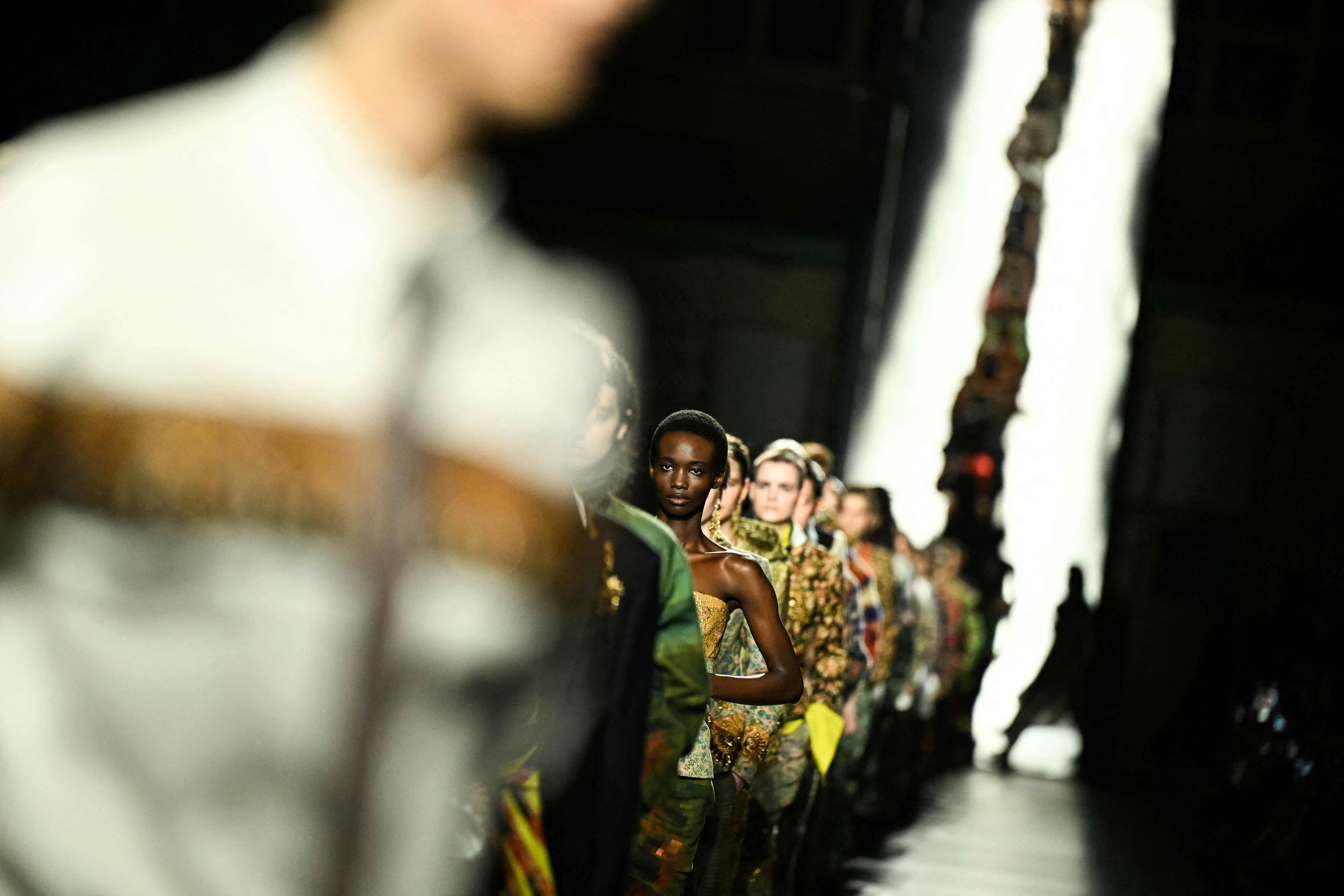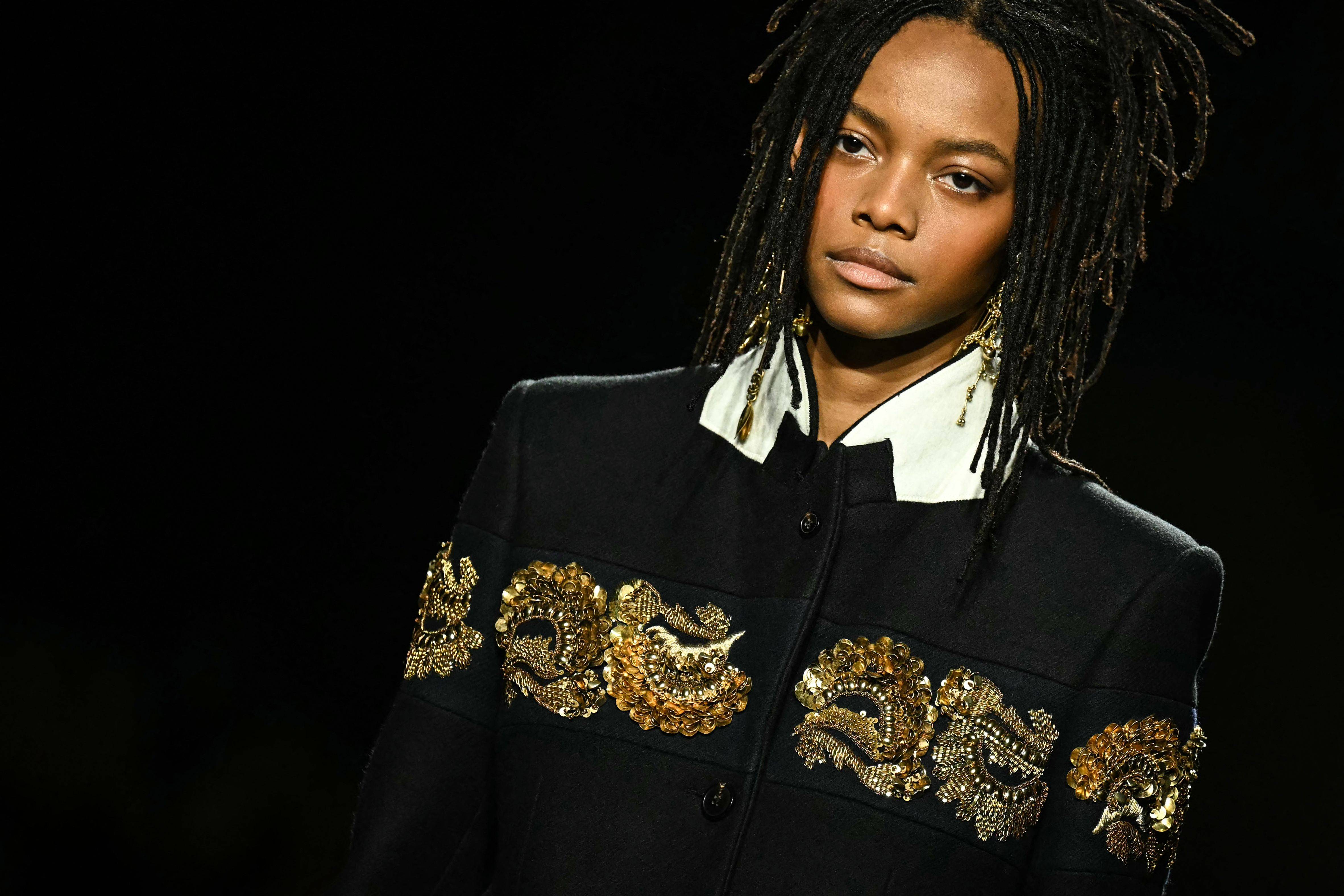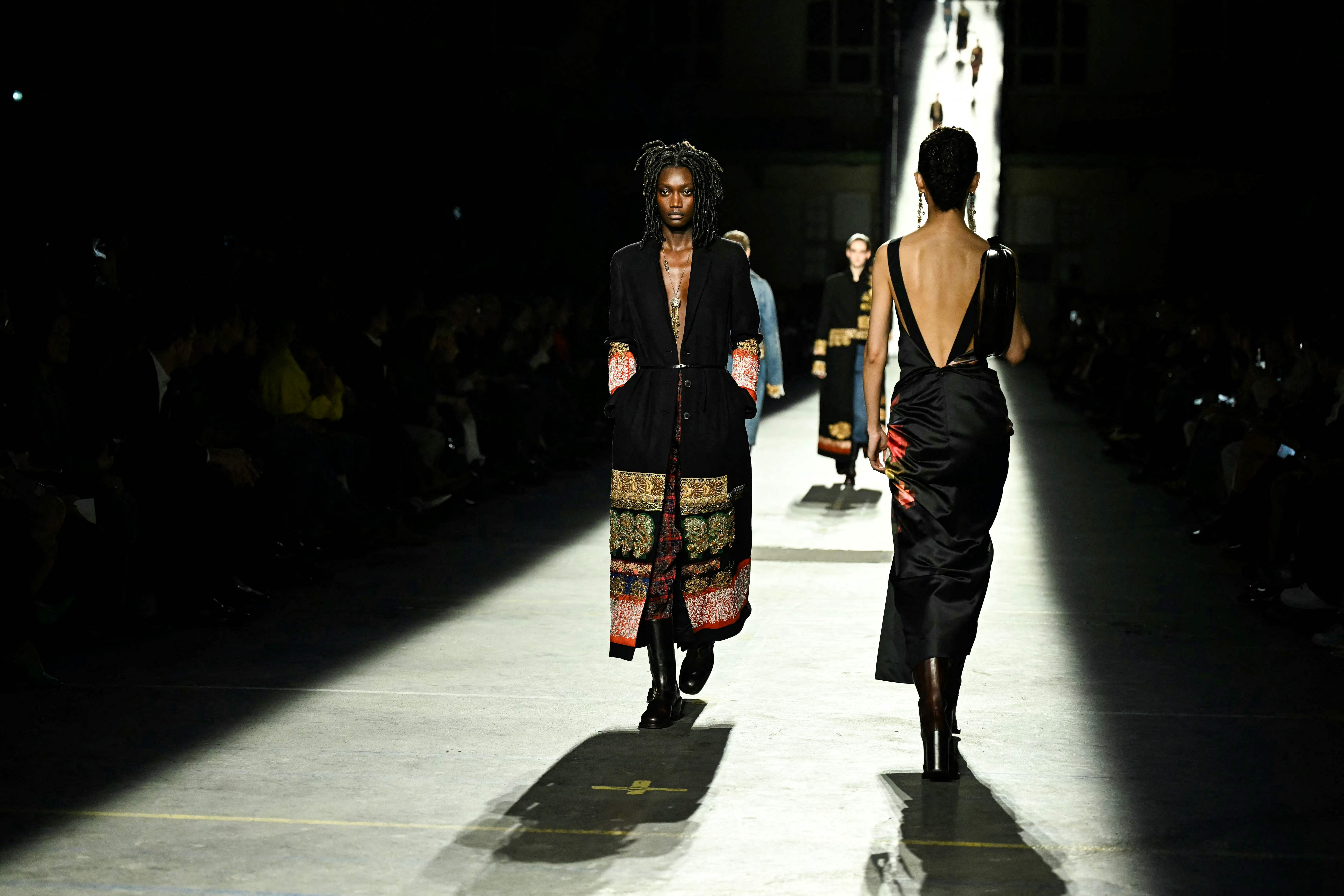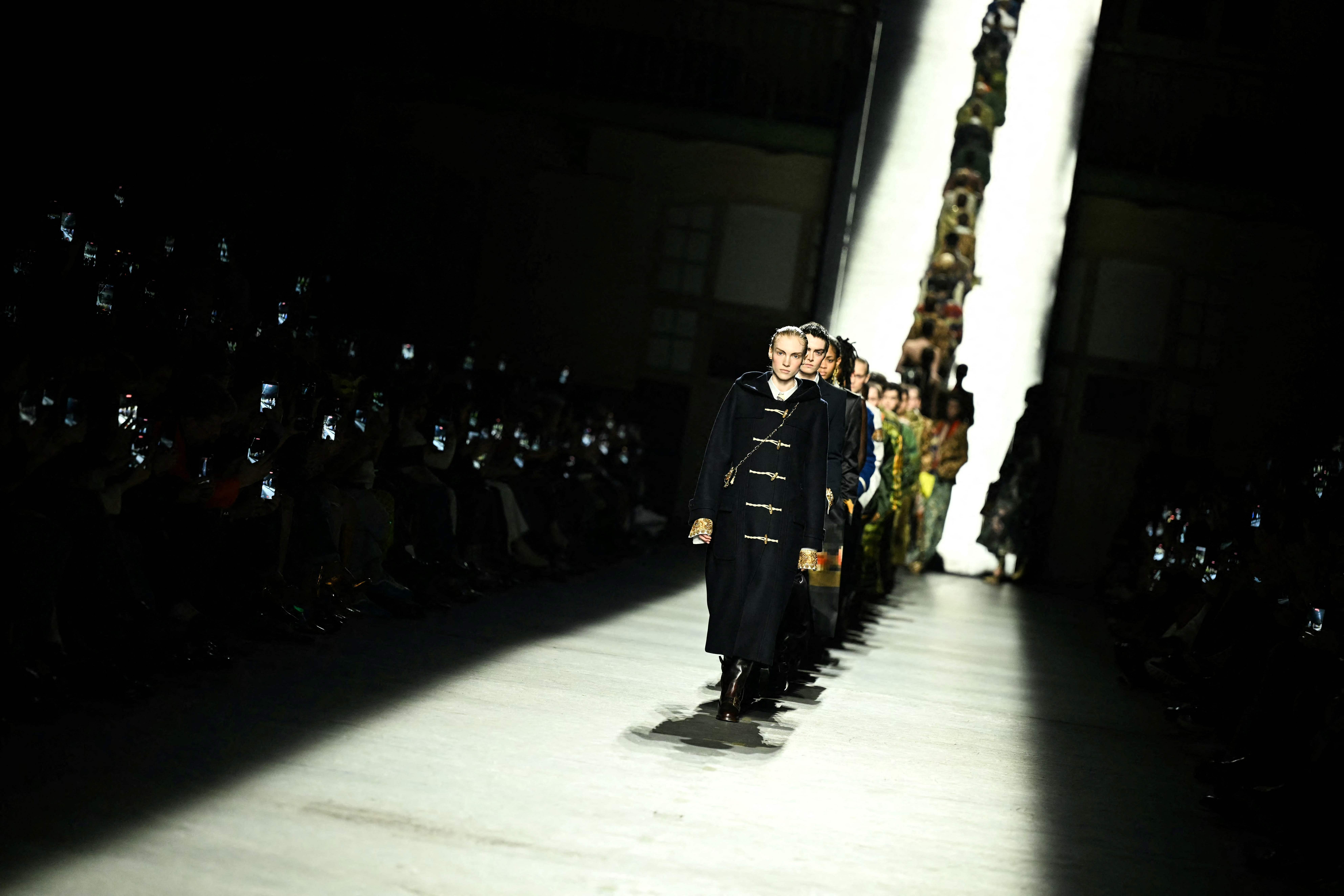 3月4日,模特在法国巴黎时装周上展示Dries Van Noten品牌的2026-2027秋冬新款时装。 新华社/法新