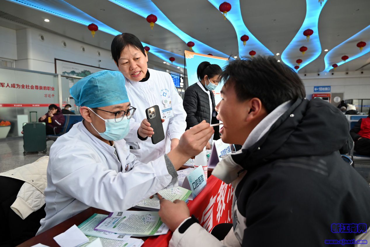 中国江苏网讯  2月9日下午,连云港市第一人民医院联合中国铁路上海局集团有限公司连云港站,在候车厅联合举办了“情暖春运·健康同行”公益健康宣教活动,为返乡务工者、大学生以及出游家庭送上了一份特别的健康关怀与新春祝福。