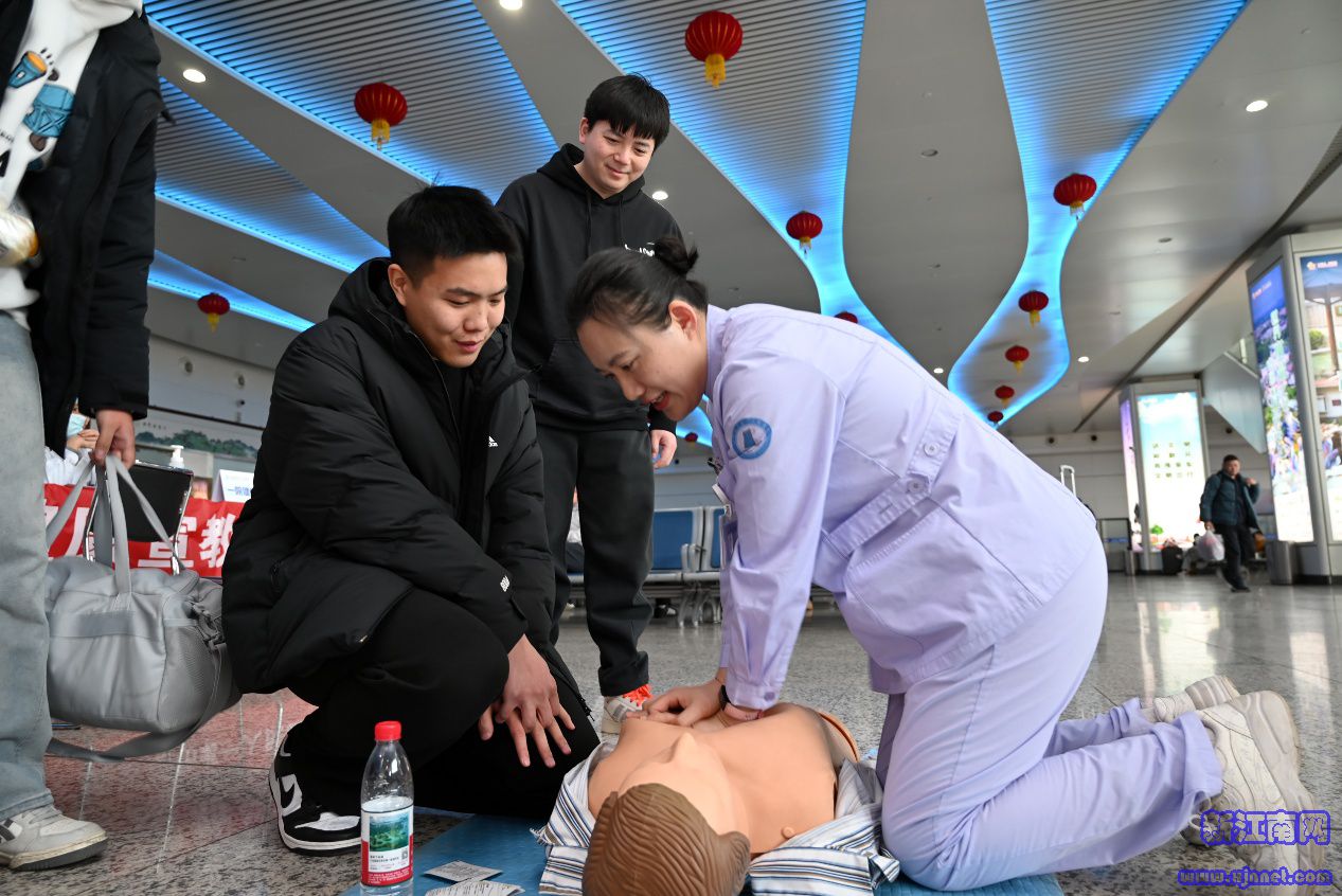 活动现场还设置了“心肺复苏术(CPR)”和“海姆利希急救法”学习体验区,医护人员现场示范标准动作和关键要点,手把手指导教学,确保大家掌握基本的急救技能。一位参与体验的大学生说:“学会心肺复苏太有意义了,万一旅途中遇到紧急情况,就能伸出援手了。”