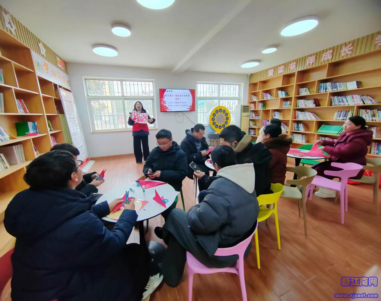 中国江苏网2月11日连云港讯 2月10日,东海县双店镇新时代文明实践所百合书房暖意融融,笑声不断,一场由双店镇新时代文明实践所、双店镇文化广电体育服务中心主办的“巧手慧心 趣味剪纸迎新春”活动在这里火热进行,吸引机关站所干部职工、假期学生和附近的村民集聚一堂,大家用手工技艺裁出浓浓年味儿,用传统民俗寄托对新年的美好祝福和期盼。