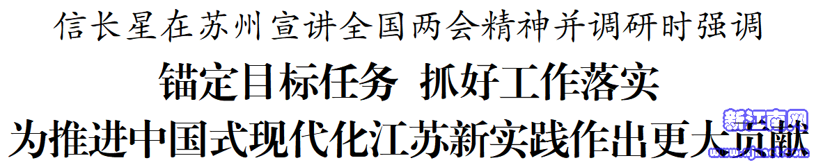 交汇点讯 3月16日至17日,省委书记信长星到苏州宣讲全国两会精神并调研。他强调,要深入学习贯彻习近平总书记参加十四届全国人大四次会议江苏代表团审议时的重要讲话和全国两会精神,下功夫研究新情况、解决新问题,锚定目标任务、抓好工作落实,为推进中国式现代化江苏新实践作出更大贡献。在苏州实验室,信长星听取实验室建设发展情况介绍,参观科研设施,并与科技工作者深入交流。他指出,今年全国两会,习近平总书记围绕因地制宜发展新质生产力,从四个方面为我们明确了主攻方向、重点任务和目标要求。苏州实验室要紧扣国家战略需求,更大力度推进原始创新和关键核心技术攻关,争取出更多标志性成果。年轻科研人员朝气蓬勃,畅谈了工作和生活情况。信长星鼓励他们勇于创新创造,为实现高水平科技自立自强贡献聪明才智。