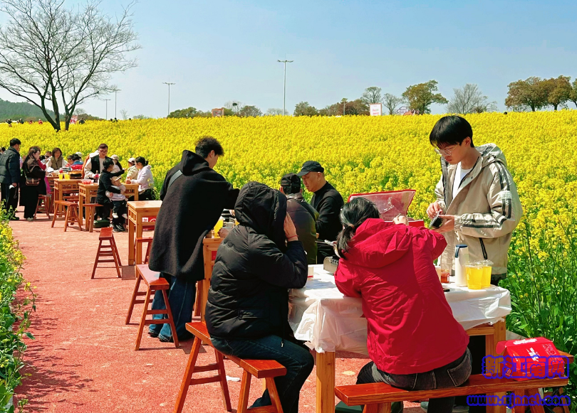 花海边吃火锅别有风味。据海底捞品牌方介绍,这是海底捞“捞个春天”春季快闪主题活动的其中一站,旨在将春日美景与美食相结合,为消费者打造独特的户外休闲体验。这个假期,快闪店不仅落地南京九龙湖公园、天生桥景区、黄龙岘景区、佛手湖公园等多处景点,还同步进驻上海、镇江、衢州等多个城市的热门赏花公园、露营基地及景区周边,未来还将覆盖更多城市。据了解,花田火锅自推出以来人气颇旺,南京当天接待游客400多人,相关周边产品也成为颇受欢迎的伴手礼。
