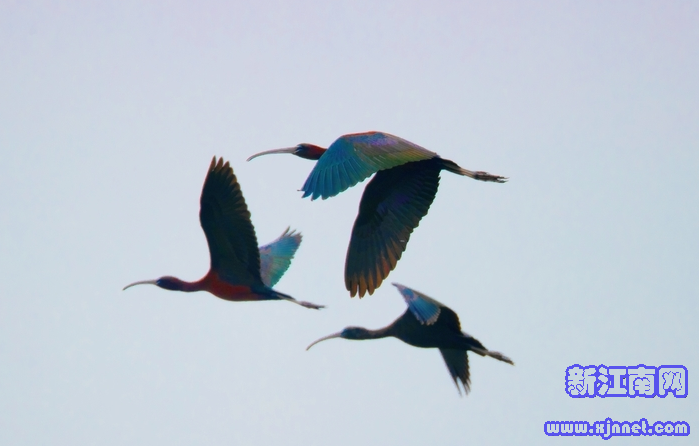 工作人员告诉记者,由于彩鹮的羽毛在阳光折射下呈现华丽的金属光泽,素有“湿地彩虹”之美誉,已被列入《世界自然保护联盟濒危物种红色名录》。此前曾一度被认为在中国野外绝迹。这一发现标志着保护区生物多样性保护取得新成效。