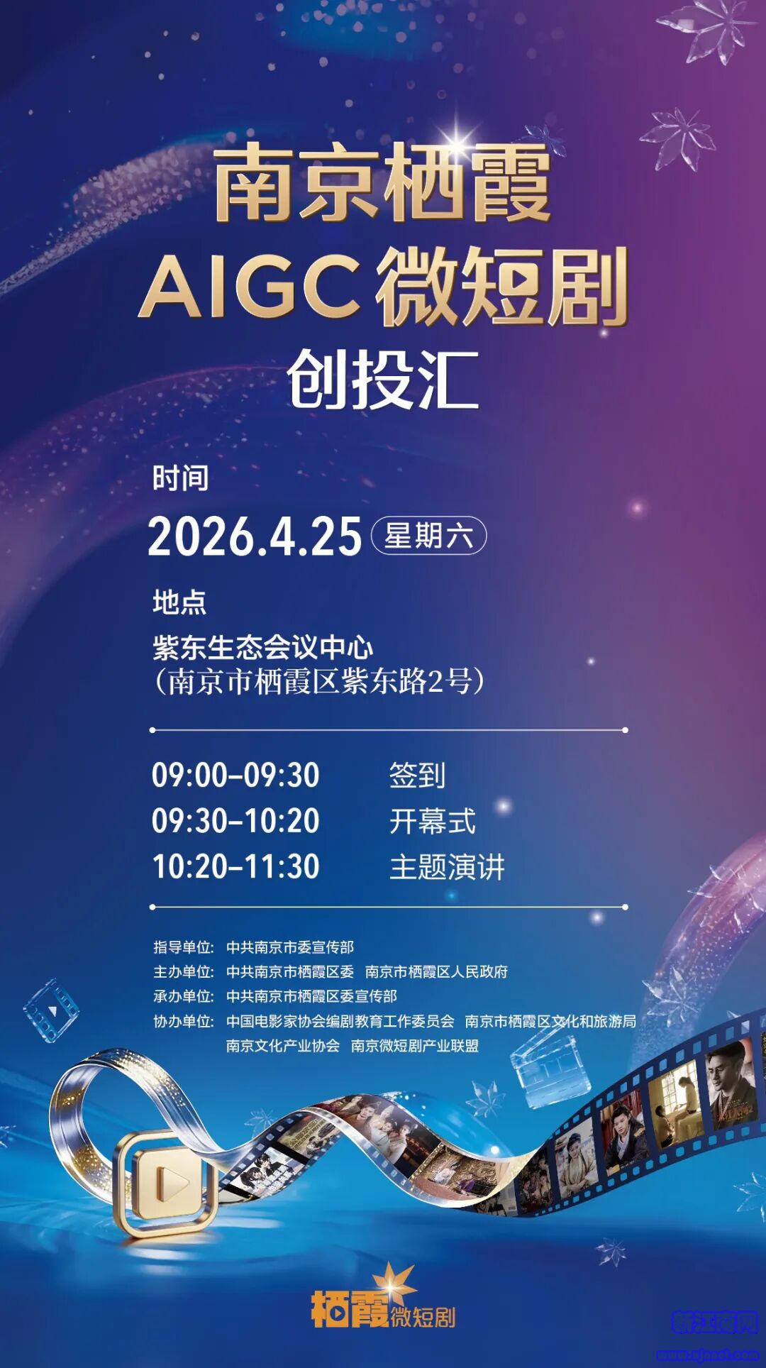 03三重价值:技术、资源、落地,一步到位对参与者而言,这场创投汇的价值远超一场会议:1. 技术破局:直面最前沿AIGC工具与应用案例,掌握AI短剧制作核心技能,告别低质内卷;2. 资源破圈:与头部平台、资本方、导师面对面,获取流量扶持、投资意向、项目孵化机会;3. 落地变现:优秀团队可得取景地支持、全网推流、资源对接,实现项目落地。04风口当前:别等下一轮,就现在如今,南京市栖霞区已搭建好平台,汇聚政策、技术、资本、人才、场景全要素,只为寻找下一个爆款创作者与领军团队。4月25日,紫东生态会议中心。风口已至,机遇在前,真正的行业赢家,从不等待趋势,只主动抢占舞台。“南京栖霞AIGC微短剧创投汇”报名通道已开放,2026年4月20日17:00截止。这里,是你对接优质资源、突破发展瓶颈、抓住下一个暴富风口的优质选择。