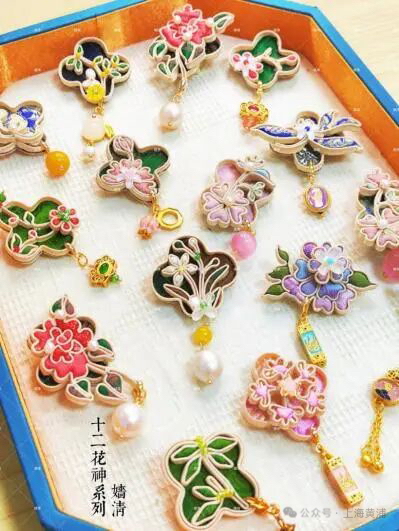 李嫱的确是家人的骄傲。去年10月,她的盘扣作品入选上海时装周东方・新中式2025秋系列活动,并在上海历史博物馆展出。新年春节,她的盘扣胸针作品“十二花神”入选“黄浦有礼”,以每月花神为主题,梅花、牡丹、荷花……一个个精致典雅,好看又好用。