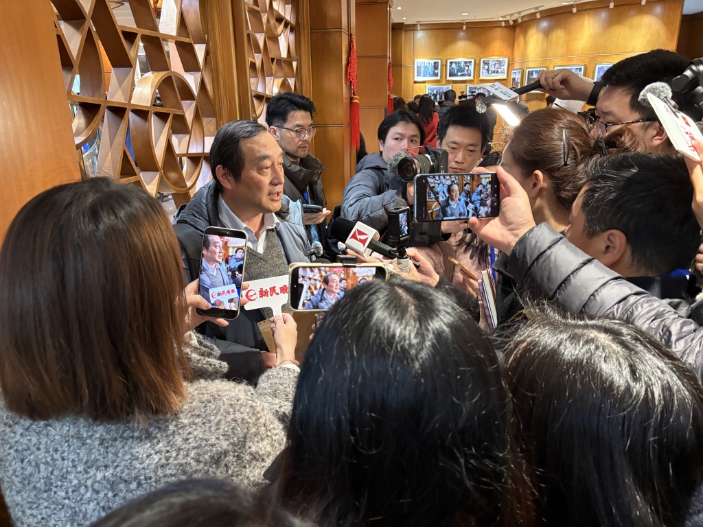 出发前,在沪全国政协委员接受记者采访。澎湃新闻记者 陈悦 图