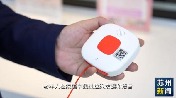 “这是一台‘一键呼’设备。老年人在家庭中,通过拉绳按键和语音,它可以实时发出救援的信息,通过24小时的人工座席平台,可以实时地实现救助服务,推动养老服务由‘被动救助’向‘主动守护’转变。”苏州市苏康养居家养老服务有限公司副总经理葛亚飞介绍。