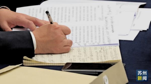 这次全会深入分析未来五年苏州发展面临的形势任务、机遇挑战,系统谋划发展的重点和抓手。亨通集团董事局副主席钱建林,在文件上仔细地划下了好几句话,笔记也写满了整整一页。