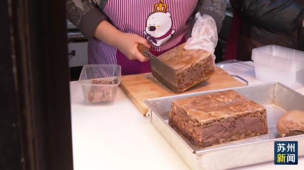 除了美味又讨口彩的爆鱼之外,羊糕也是苏州人冬至夜必吃的时令菜品。不少羊肉店都生意兴隆,顾客络绎不绝。
