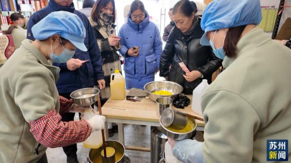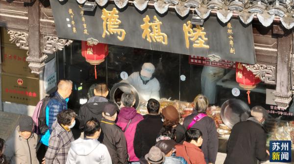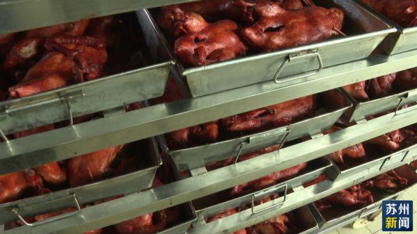为保障节令供应,苏州多家老字号卤菜企业已经开足马力加紧生产。在苏州高新区的卤菜加工厂里几十口大锅同时运作,炸鱼、炖鸭、煮肉分工明确,师傅们有条不紊生产线日夜不停,确保产品第一时间送往全市各大门店。