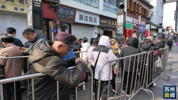 由于保存时间比较短,零拷冬酿酒一般只售卖半个月左右。这两天,观前街老字号酒栈门口零拷的队伍依旧排起长龙,当天可用的销售号源等不到中午就发放完毕了。