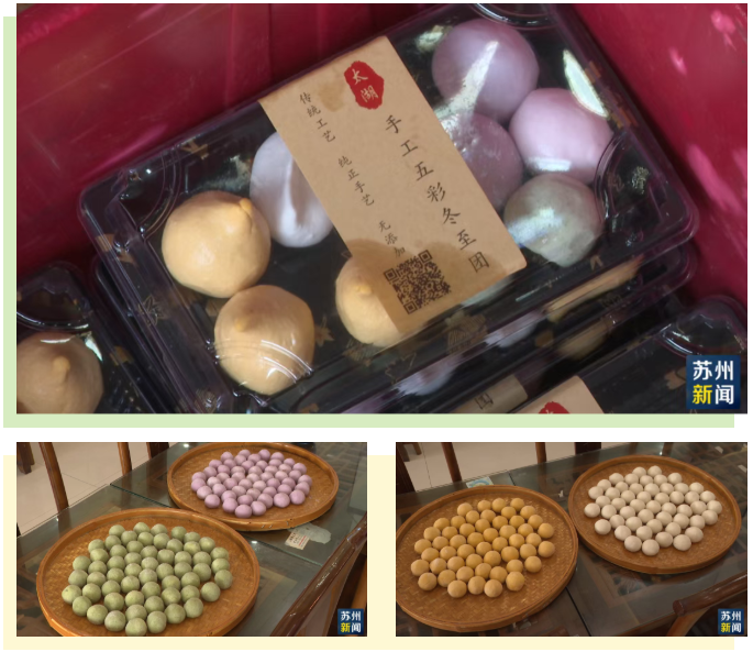 在吴中区光福镇,船娘们这几天正忙着做五彩冬至团,除了馅料讲究之外,南瓜、紫薯、火龙果等瓜果蔬菜直接揉进面里,制成五彩柔软的外皮,让冬至团的颜值更上一层楼。