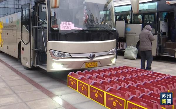 今年,波司登调配了8辆包车,其中2辆车“点对点”将河南、重庆籍员工送回家乡,实现“厂门到家门”无缝衔接;6辆火车专线送站车辆,把员工送到苏州火车站。
