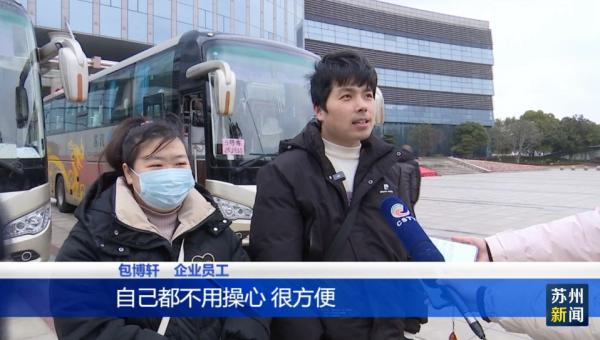 企业员工包博轩说,公司有安排夫妻房,都还挺好的,公司还发了羽绒服,品质都挺好,过年回去,火车票都是公司帮我们安排买的,自己都不用操心,很方便。
