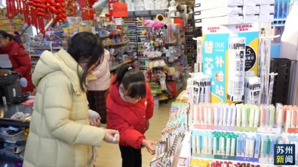 昨天(2月27日)中午,在司前街苏州文化市场内,不少家长正带着孩子穿梭于各书店摊位,精心挑选新学期的辅导书籍,备战新学期。
