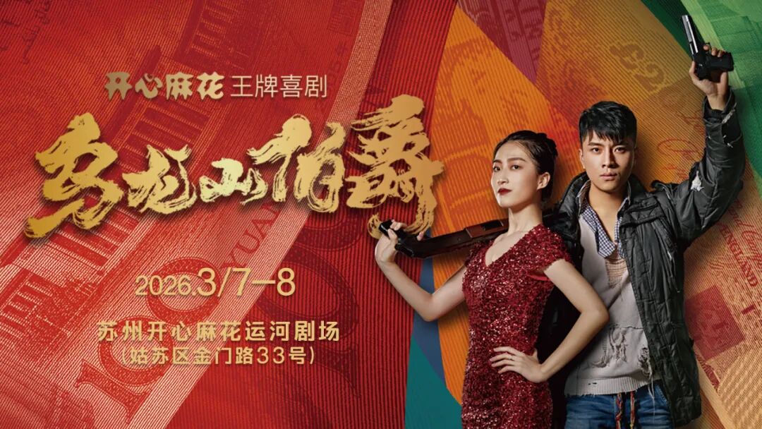 马年首演,开年大笑!苏州开心麻花2026第一场,献给《乌龙山伯爵》。三月春风里,一起闯入这场荒诞又刺激的财富冒险。准备好迎接属于你的150分钟爆笑了吗?