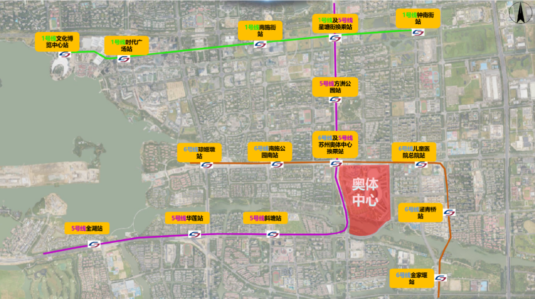 市民游客可乘坐地铁5、6号线直达苏州奥体中心站。