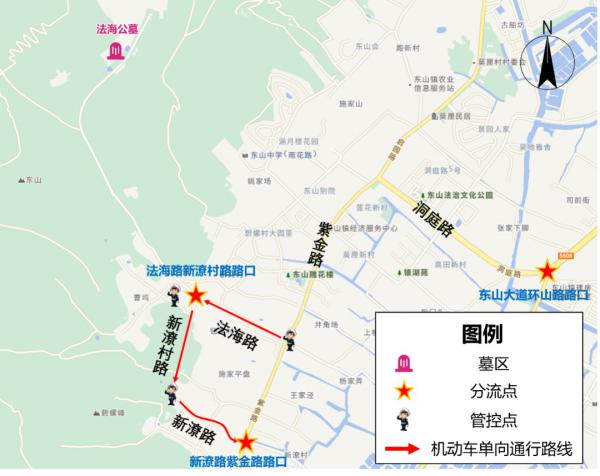 1)东山大道-盛家桥路-环胥南路(仙桥公墓,新麓公墓);