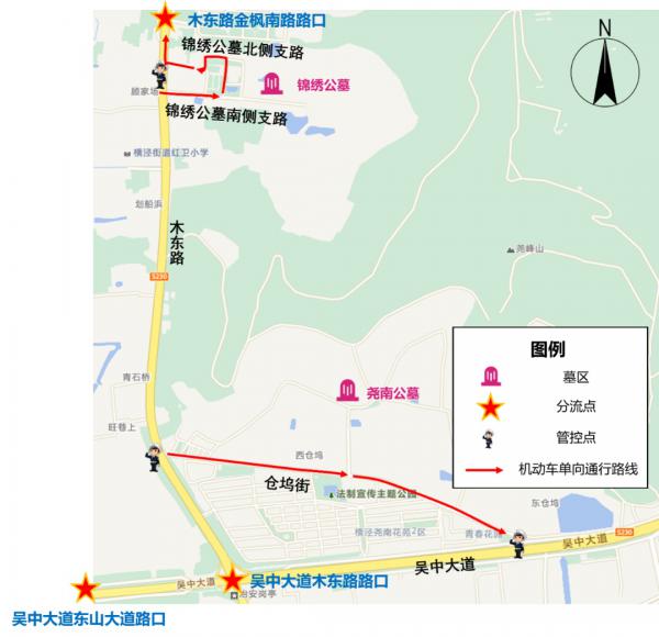 (3)锦绣公墓北侧支路由东往西单向通行。