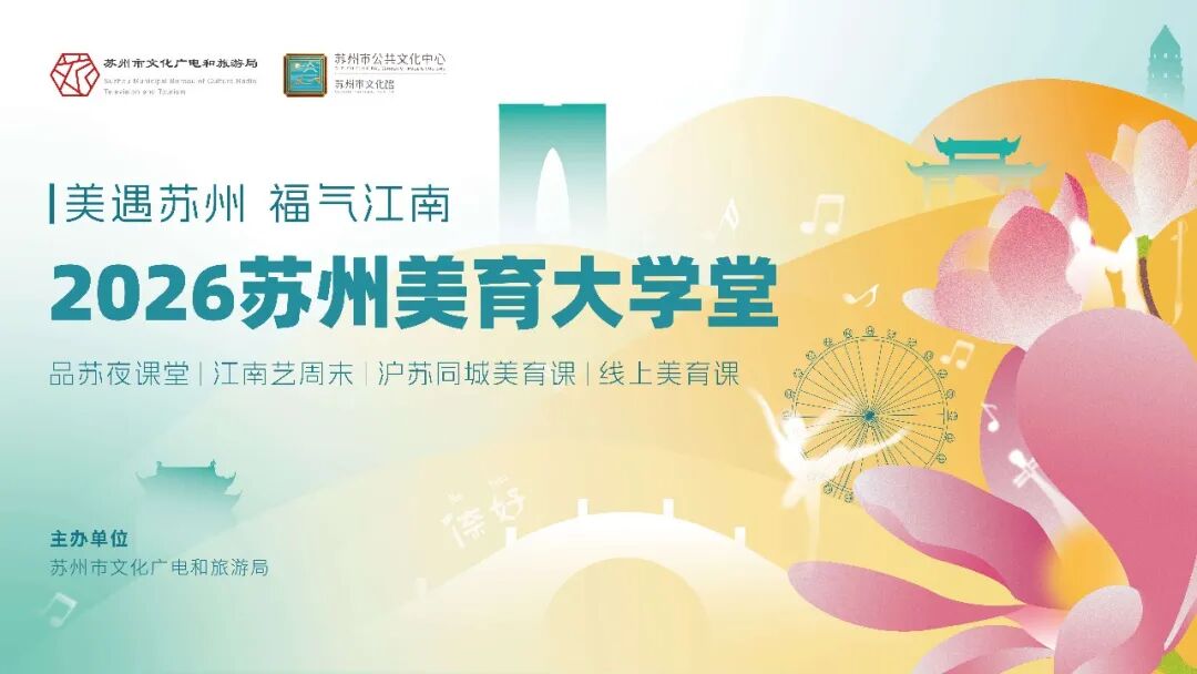 美遇苏州,福气江南。这个春天,让我们一起携手走进久违的课堂,在“美”与“爱”的浸润中为“才艺”储值、为“老己”赋能,2026苏州美育大学堂,等你“艺”起来。