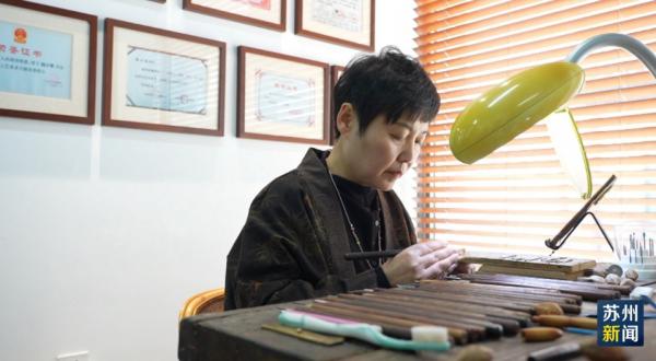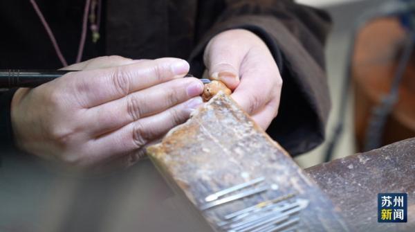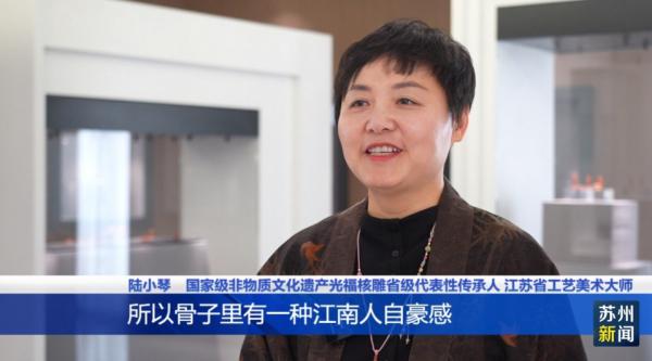 国家级非物质文化遗产光福核雕省级代表性传承人、江苏省工艺美术大师陆小琴说:“因为我是苏州人,属于江南人,所以骨子里有一种作为江南人的自豪感,我把江南文化的符号提炼出来,然后在我的作品上进行创作,用了一种造型艺术与我们的传统文化相结合的表现手法,来进行创新。”