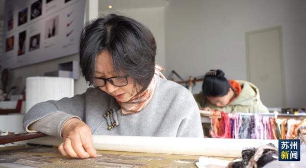 六七岁便跟着母亲学刺绣,对刺绣的热爱在薛金娣心里扎了根,手中的针线就再也没有放下过。正是凭着这股从不服输的钻劲儿,薛金娣不断挑战着苏绣的极限。2011年,她凭借作品《捣练图》一举摘得山花奖。获奖后,她潜心钻研,独创了“捻丝盘线刺绣方法”等新技法,并成功获得两项国家发明专利,被业内誉为“文人画绣制第一人”,也正是这一份坚守,让她的作品走出国门。