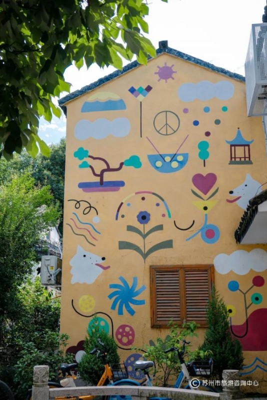 这片色彩缤纷的涂鸦艺术长廊,由酱油弄、东升里、志恒里三条巷子组成。一幅幅可爱又浪漫的涂鸦创作,使得年代感厚重的姑苏小巷焕发了新的生机,吸引了不少年轻人前来打卡拍照。
