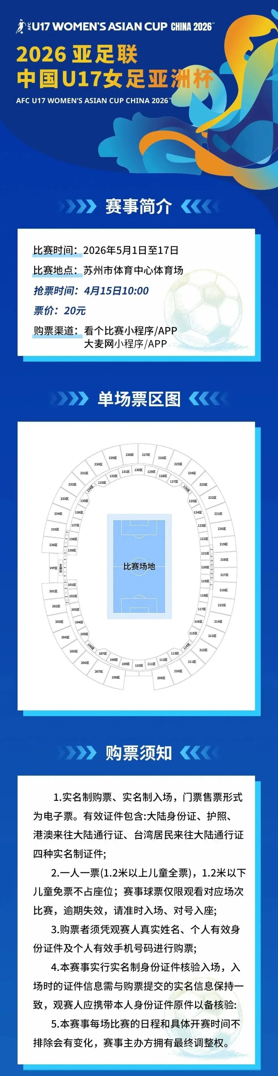 昨天(4月15日)10点,2026亚足联中国U17女足亚洲杯正式开票啦!本次赛事备受关注,刚刚开票就有大批球迷在线购买,为中国U17国家女子足球队加油打Call。