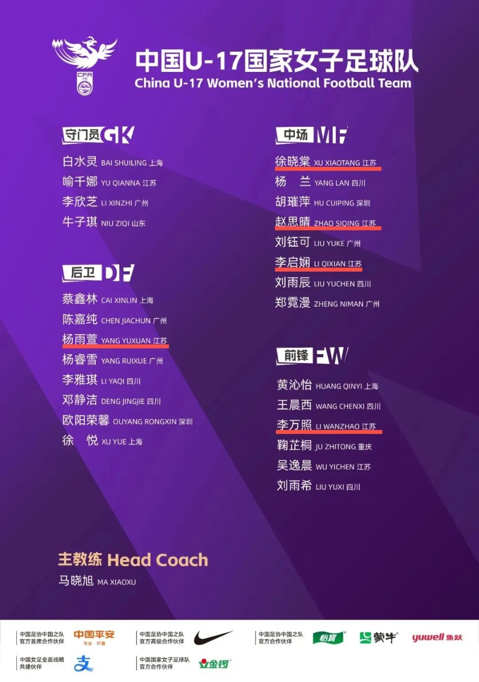 值得一提的是,中国足协近日发布了2026年U17国家女子足球队2026年第四期集训名单,杨雨萱、徐晓棠、赵思晴、李启娴、李万照共5名苏州女足球员入选26人大名单。