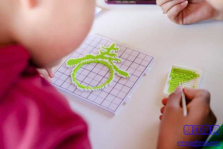 五颜六色的小豆子在模板上一颗颗排列,再用熨斗加热定型,就能变成冰箱贴、钥匙扣、杯垫或小摆件。拼一朵花、一只春燕、一座小房子……孩子们专注创作的样子,比春天还好看。