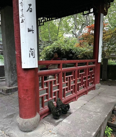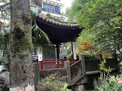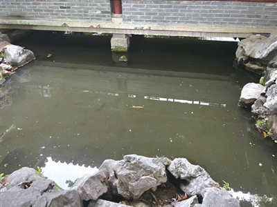 梅石园内现状堪忧昨天,记者来到佑圣观路93号的梅石园。院子很迷你,资料上说占地一亩,应该是杭州最小的园林建筑。门口蹲着一头石狮子,门楹上砖雕三个大字:梅石园。进入园门,一座深藏闹市区的园林扑面而来:有廊、有泉、有亭、有假山……园内回廊曲折,梅枝扶疏,园不大却雅致。园里的一汪泉水叫大液泉,记者看到,泉水已经发黑发绿,几条大鲤鱼在慢吞吞游动。一条连接大液泉的人工溪涧里,落满了落叶,近乎干涸。沿着园里的一条曲折的碑廊,记者走了一圈。走廊里凌乱摆放着几把破旧的椅子,地面丢弃着很多烟头。双清亭边晾晒着一双潮湿的旧鞋,与周围景观颇不协调。亭子台基上的石缝里,生出杂草。