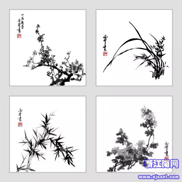 注:图片均来自网络,向原作者致谢。下面附上本文作者梓庭君的国画作品《梅兰竹菊》。