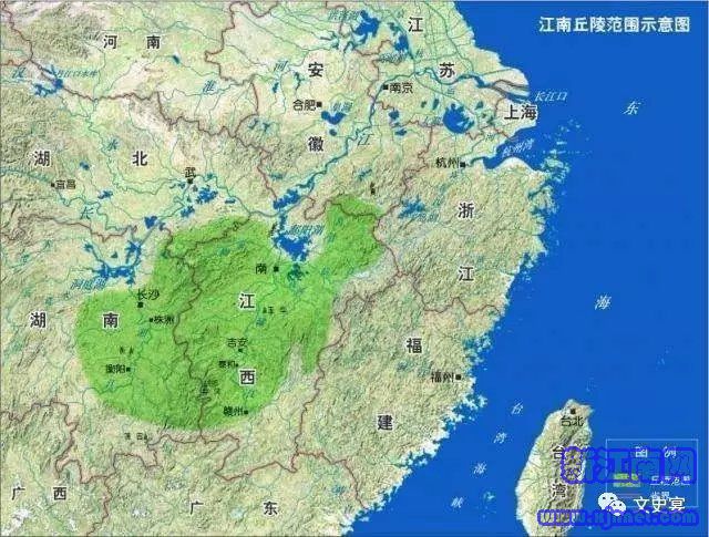 从自然地理区划的角度看,江南是指除却长江中下游平原的南岭以北洞庭湖、鄱阳湖以南太湖以西的一片盆地丘陵相间分布的区域——江南丘陵区。