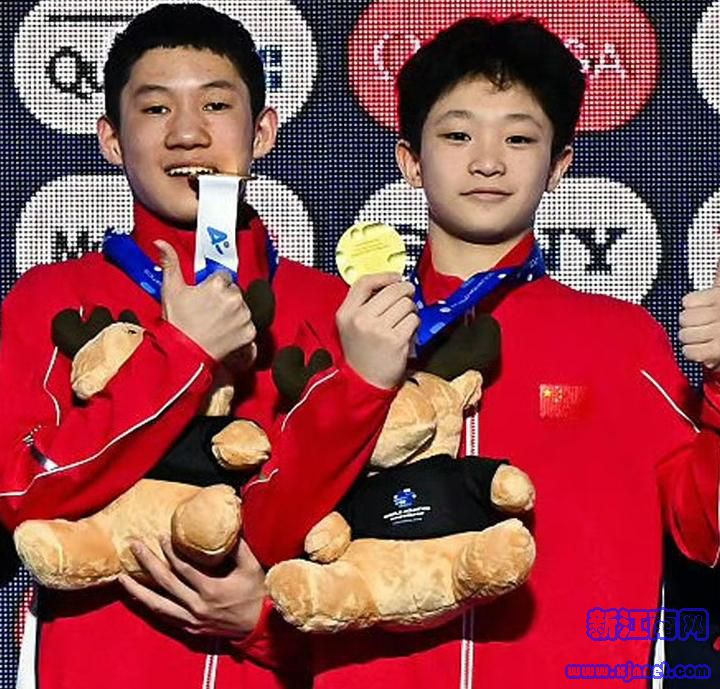 蒋林静在颁奖仪式上。图片来自中国国家队微博女子3米板方面,陈艺文以375.90分获得金牌,陈佳以362.55分摘得银牌,两人搭档获得女双3米板冠军。赛后,一度承认自己在巴黎奥运会后失去目标的陈艺文表示自己的状态更为平静了,“我给自己留出了更多的时间来计划所有的训练,享受训练的过程,并更好地专注于训练。”她说。19岁小将白钰鸣在男单10米台项目中以543.55分战胜老将练俊杰获得金牌,后者获得银牌。14岁的赵仁杰与16岁的杨志豪搭档,以469.23分摘取男双10米台金牌。