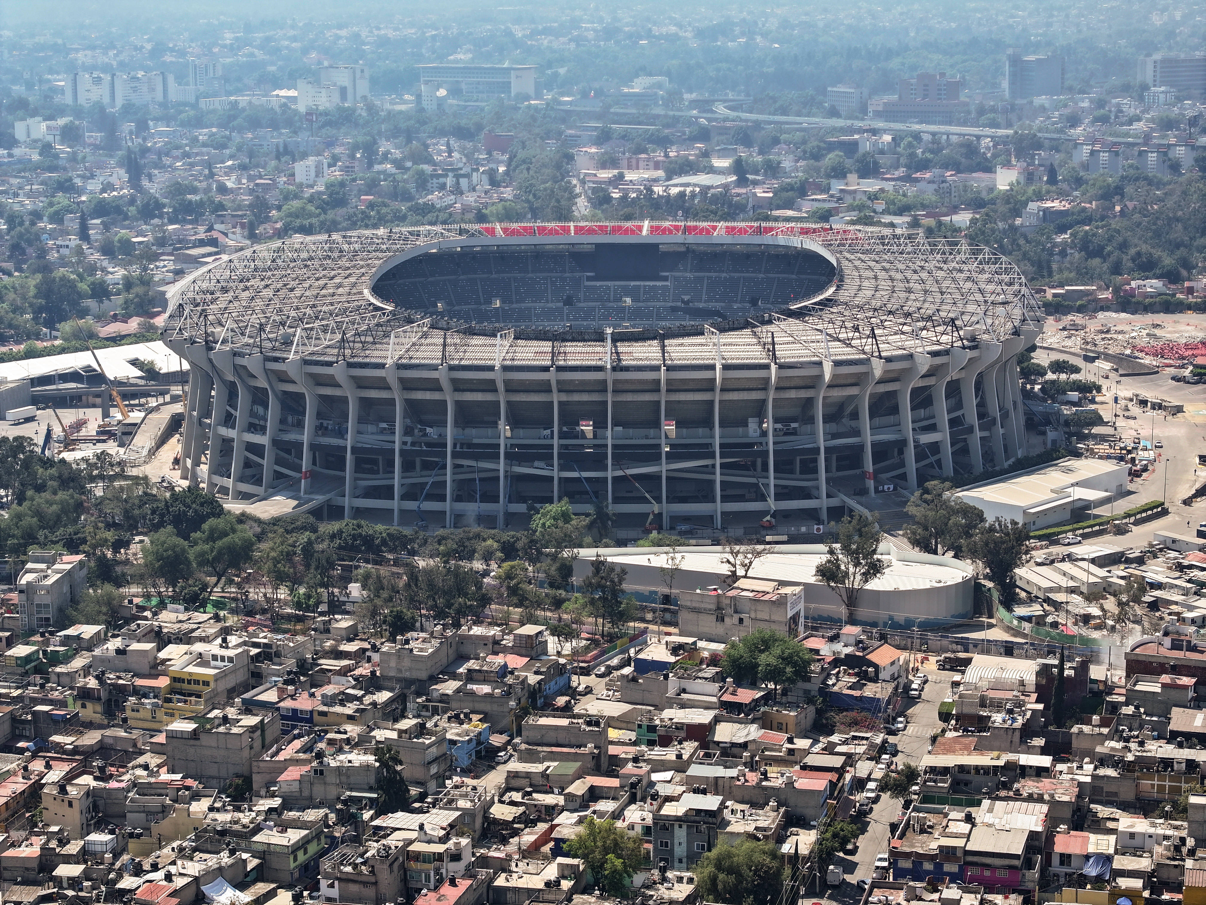 3月3日,在墨西哥首都墨西哥城,工人在阿兹特克体育场施工。 新华社发(弗朗西斯科·卡涅多摄)