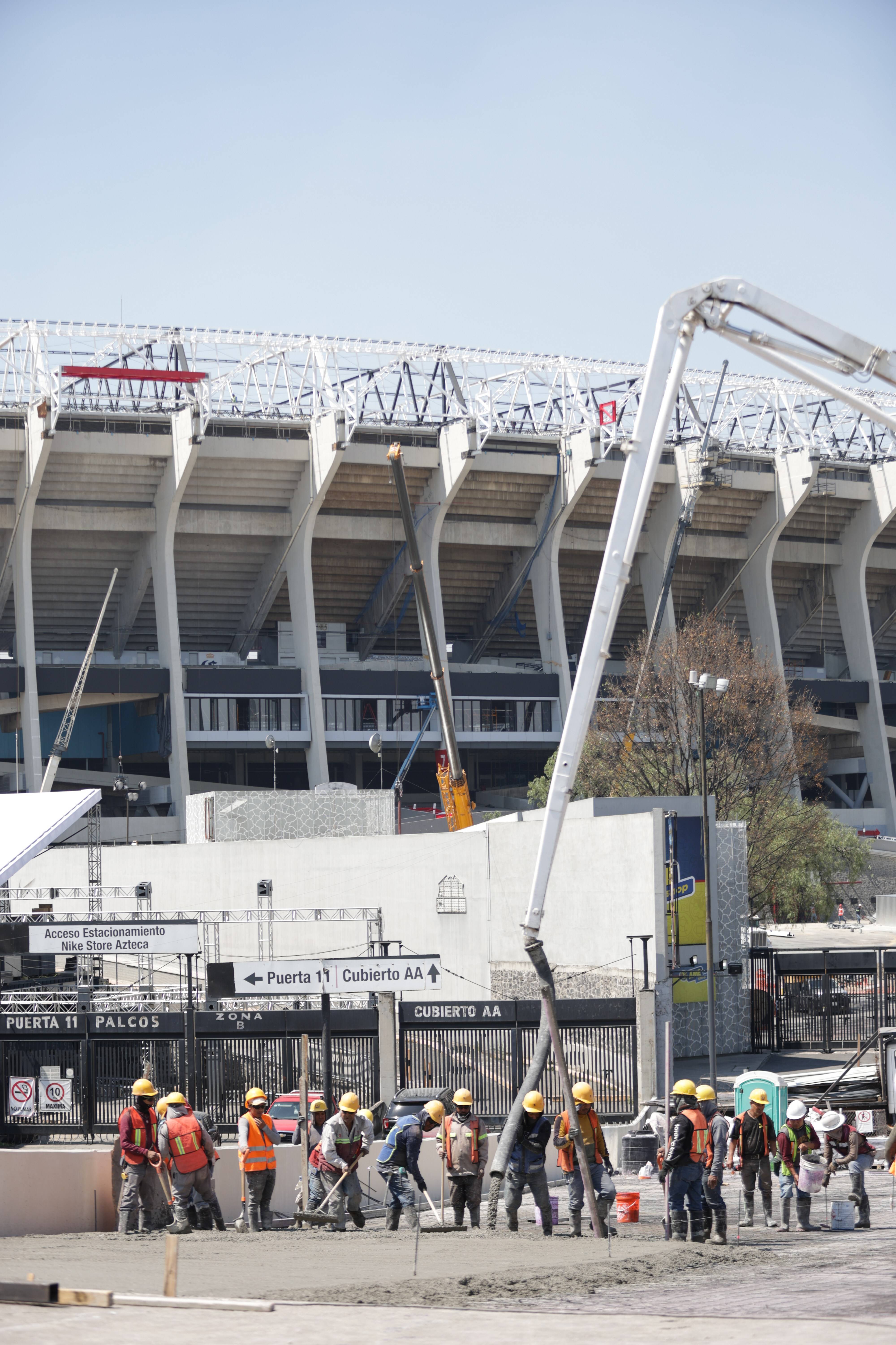 3月3日,在墨西哥首都墨西哥城,工人在阿兹特克体育场施工。 新华社记者 李木子 摄