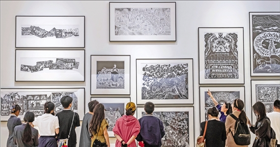4月10日,中国美术学院举行2026年“国美发布”暨建校98周年系列学术活动。活动中,发布了第五届中国设计大展及公共艺术专题展、首批省级教科人一体改革试点新青年设计共创行动有关情况,中国美院“文艺复兴研究中心”揭牌。当日,师生还在中国美院中国国际设计博物馆为来访嘉宾导览“轮回——古罗马与汉代文明对话展”等展览。图为观展现场。