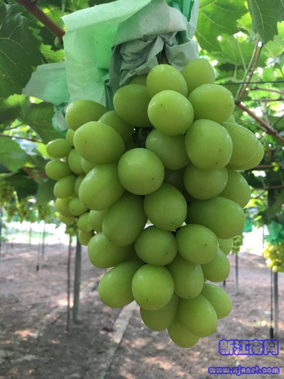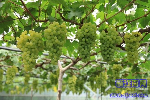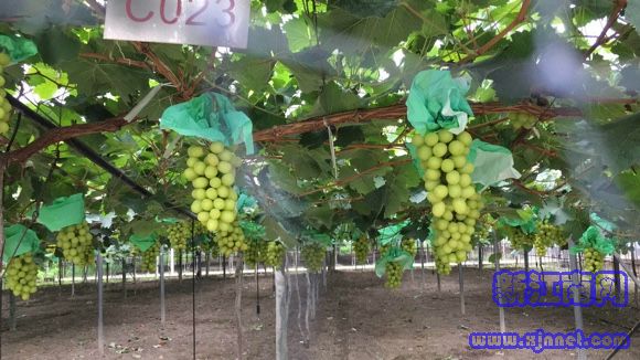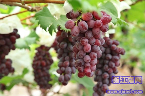 公园内采用绿色生态种植模式,施用有机肥、绿肥,运用物理手段防治病虫害。一亩地36棵树,一棵树70根枝条、45串葡萄,平均1.5根枝条养一串葡萄,大果粒葡萄1片叶子养一粒果实。