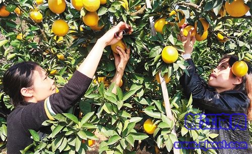 11月6日,江西省赣州市信丰县大塘埠镇六星村的果农在采摘脐橙。6日是赣南脐橙统一开摘日,果园里一片繁忙景象。近年来,享有“守信之地 世界橙乡”美誉的信丰县大力创建标准生态果园、加大技术覆盖,脐橙产业实现了高质量发展。目前,该县脐橙种植总面积21.87万亩,总产量预计达11.5万吨。