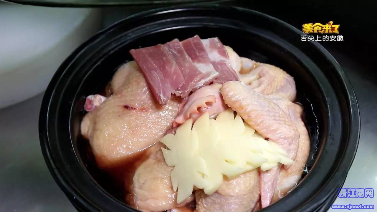 这道菜除了仔鸡以外,还有些食材是不可忽略的,比如加入了粽叶提香;加入了冬笋和黄山当地的火腿等,更加使得这道菜鲜香可口。并且烹制时不加入一滴水,使用黄酒代替了水。
