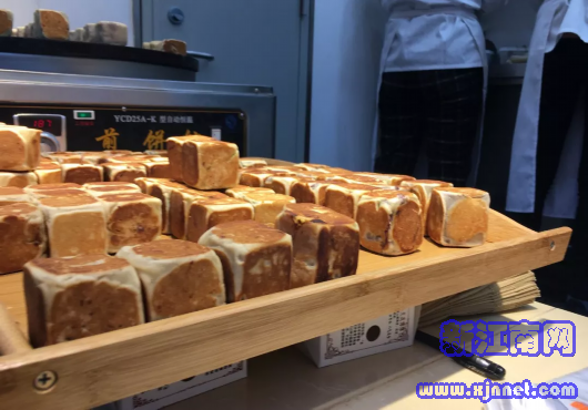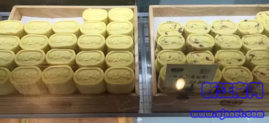 与上海绿豆糕不同,仙豆糕是现烤现卖,等待刚出炉的那一波真的很煎熬(太香啦~)。仙豆糕方方正正的,超级呆萌。