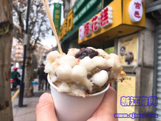 小小门店始终坚守着十几年前的老米道,而冬日里趁热吃梅花糕,真的超级刺激的~上面是糯米圆子,还有红枣、果仁、青红丝等辅料,咬破焦脆的外皮,热腾腾的内馅就一涌而出,那种烫嘴但又想吃的画面实在惨不忍睹!